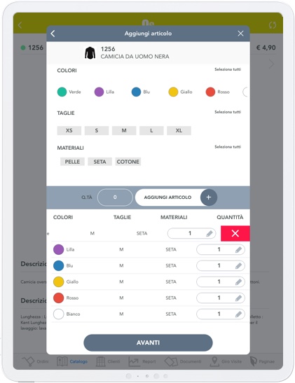 Con il Modulo Varianti, l’agente può gestire codici complessi legati a taglia, colore, tessuto, materiale.